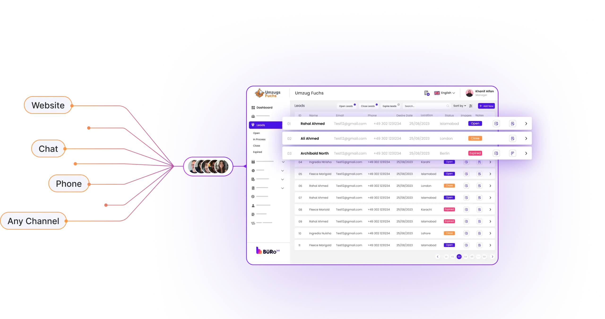 Every lead, from your website, chat, or any other channel, lands in one place.